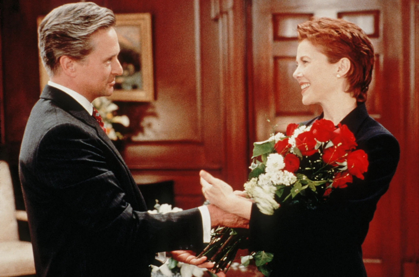 The movie tells the tale of a fictional mid-90s president played by Michael Douglas. His character is also a widower, after his wife passed away during his presidential run. At the beginning of the movie, he meets a fiery lobbyist played by Annette Benning. He’s immediately attracted to her, invites her as company to a big event, and the two start dating.